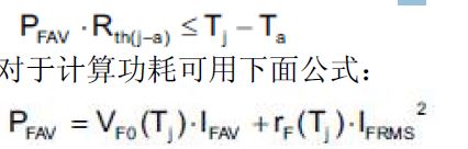 在連續(xù)運(yùn)行時(shí),對(duì)正向?qū)娏髫?fù)載的解釋參數(shù)是平均功耗PFAV 乘以總熱阻Rth(j-a)。這個(gè)乘積不允許大于環(huán)境溫度Ta 和最大允許結(jié)層溫度Tj 之間的差: